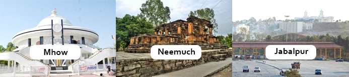 4. What do Mhow, Neemuch, and Jabalpur have in common?